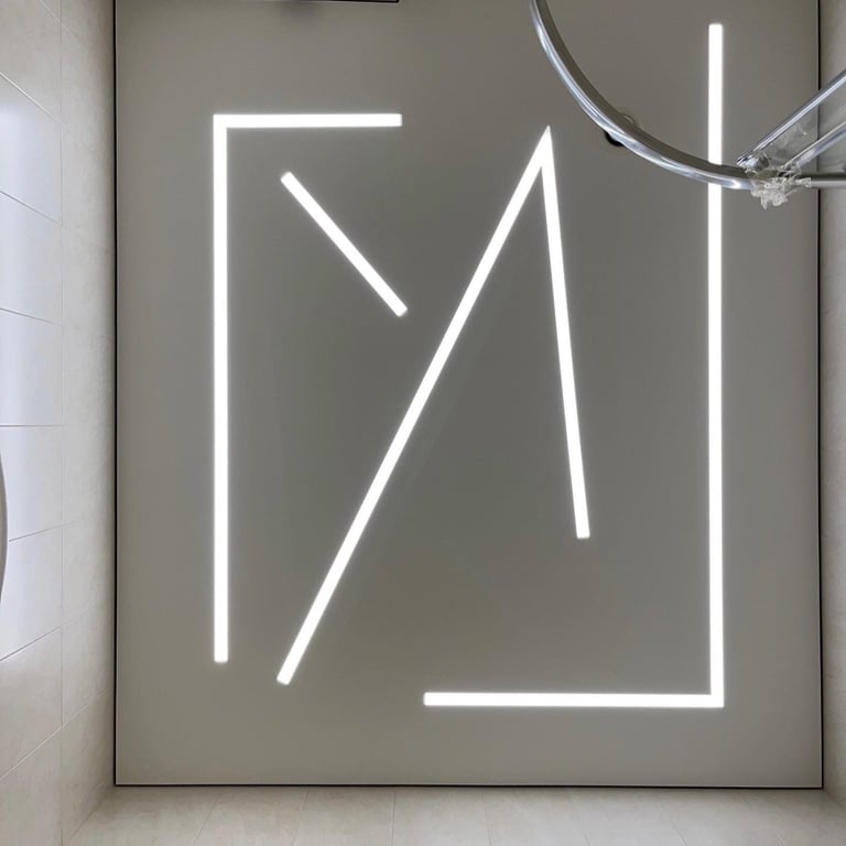Šiame projekte įrengėme 120 kvadratinių metrų įtempiamų lubų, kurių dizainą išskirtiniu daro 50 metrų įmontuotos LED juostos. Juodų ir baltų blizgių lubų derinys suteikia interjerui prabangos, o LED linijos – modernumo ir išskirtinumo.