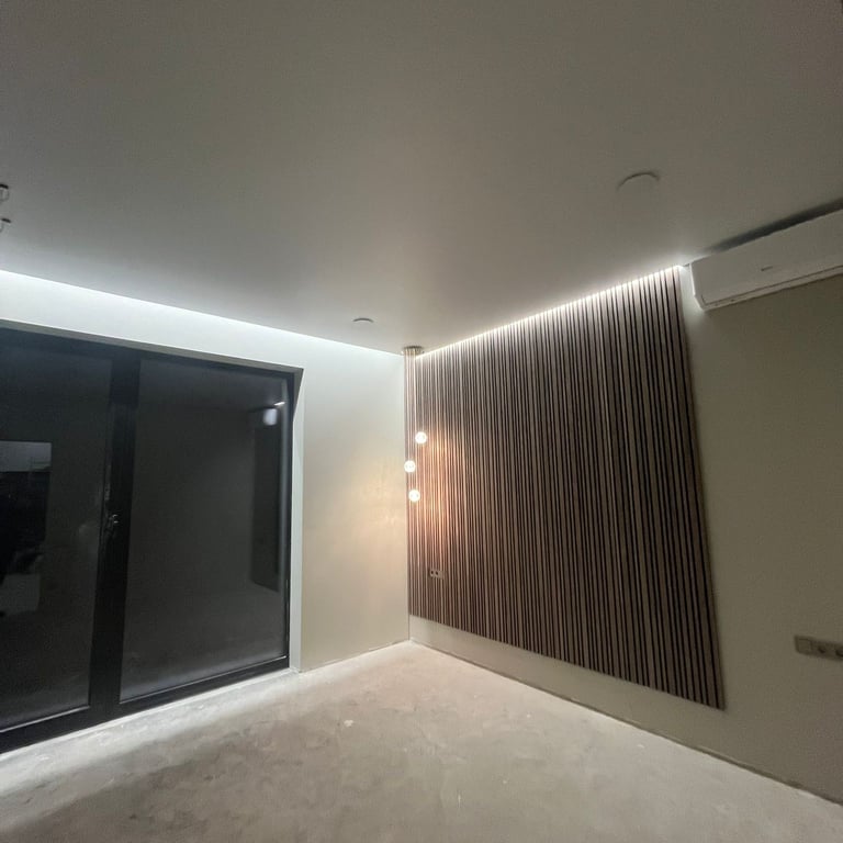 Įtempiamos lubos – 120 m² su 50 metrų įmontuotos LED juostos
