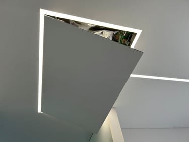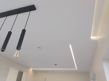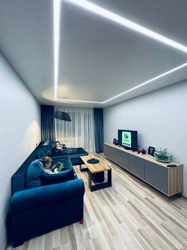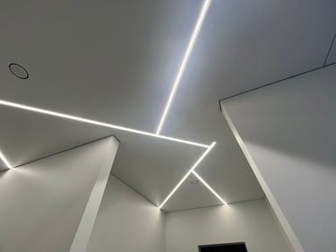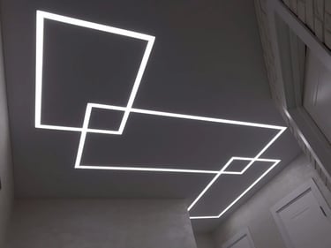 Šviečiančios LED linijos – tai ne tik estetinė, bet ir funkcionali interjero detalė, leidžianti sukurti tolygų ir malonų apšvietimą. Šviesos diodai įmontuoti aplink lubų perimetrą, o jų skleidžiama šviesa subtiliai apšviečia kambarį, išryškindama jo kontūrus. Tokio tipo apšvietimas puikiai tinka tiek gyvenamosioms patalpoms, tiek biurams ar viešosioms erdvėms. Naudojant reguliuojamus LED sprendimus, galima valdyti šviesos intensyvumą ir spalvų tonus, pritaikant juos pagal individualius poreikius. Šie apšvietimo sprendimai atrodo įspūdingai