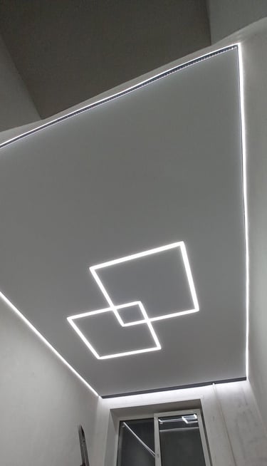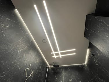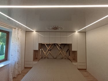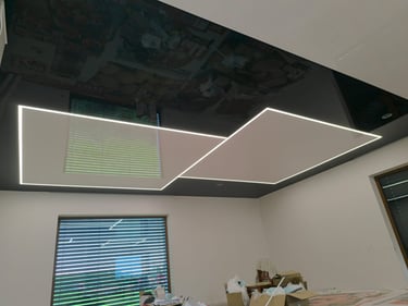 Šviečiančios įtempiamos lubos su LED linijų profiliais yra puikus būdas suteikti kambariui modernų ir stilingą apšvietimą, tuo pačiu suteikiant funkcionalumą ir estetiką.